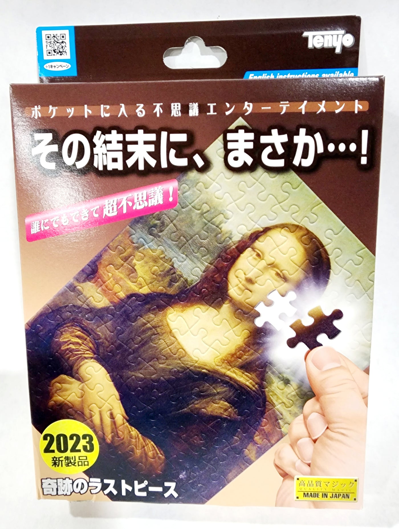 A spectator randomly selects a jigsaw puzzle piece from a loose pile of pieces. The magician draws attention to a cloth that covers a completed puzzle on the table. He removes the cloth and shows that one piece of that puzzle is missing. Incredibly, the single puzzle piece the spectator selected is exactly the correct piece needed to complete the puzzle!